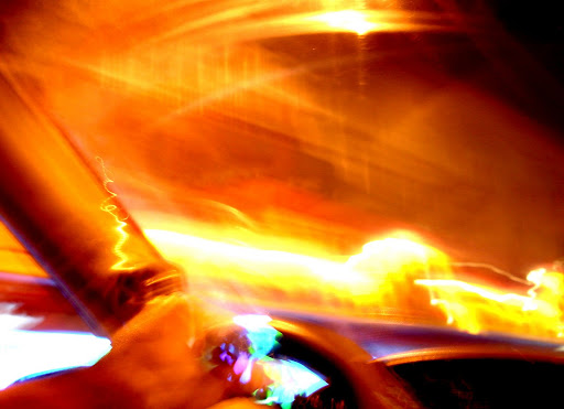 Descendant la rue Saint-Denis, je « course » avec un autre chauffeur depuis l’avenue du Mont-Royal. Il me passe, je le repasse. Avec la circulation de l’heure de pointe, on ne peut pas faire trop de vitesse. Ça ressemble plus à une course à obstacles. Une plus ou moins saine compétition pour être devant l’autre au cas où un bras se lèverait. En bas de Sherbrooke quand ça devient sens unique, on roule côte à côte protégeant chacun notre côté de la rue. Profitant d’un véhicule parqué en double, je passe devant et me rabats dans sa voie, car un groupe attend un peu plus loin près de De Maisonneuve. Alors que je ralentis pour m’assurer qu’il n’y a pas de clients potentiels, l’autre chauffeur me re-dépasse en me frôlant le miroir et en faisant gronder son moteur. J’ai juste le temps de passer sur la jaune et me remets à sa poursuite. C’est tellement tranquille sur la route, faut bien se divertir comme on peut. J’arrive presque à sa hauteur quand il braque et vient me couper. Il est frustré et je décide de ne pas en rajouter. Je le laisse continuer tout droit vers le Vieux-Montréal et je tourne à droite sur René Lévesque quand j’aperçois cette femme à l’intersection de Sanguinet.