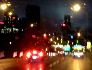 Je vois la femme sortir du bar et se faufiler entre les piétons et les voitures. Sachant qu’elle va lever le bras, je ralentis et stoppe le taxi à sa hauteur. Elle monte et sans me saluer, me dit de la conduire sur la Rive-Sud par le pont Champlain. Je lui demande si elle veut que je prenne l’autoroute Ville-Marie pour que ça aille plus vite, mais fermement, elle m’intime de prendre René-Lévesque. Je ne m’obstine pas, après tout c’est elle qui paye. Après quelques minutes de silence, je lui demande pour briser la glace si sa soirée a été bonne. Le ton frigorifique de son : « très bonne merci!» m’indique que ce ne sera pas nécessaire de pousser plus loin la conversation. Ça m’est égal, je monte le son de la musique et me dirige rapidement de l’autre côté du fleuve.