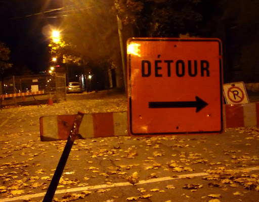 Je pars donc de La Petite-Patrie et prends Bellechasse vers l’est pour aller descendre Chateaubriand et aller rejoindre Laurier en passant par Saint-Hubert, Saint-Grégoire et Berri. Je fais ça pratiquement tous les jours, je pourrais vous géolocaliser chaque nid de poules et vous dire à quel degré d’orangé sont les arbres qui bordent le parcours.